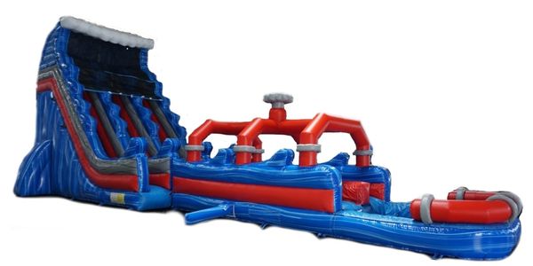 Introducing the Daredevil Island, measuring 27 feet in length, 22 feet in width, and towering at 18 feet. Take a jump off the 12 foot platform into an airbag or take the jumbo slide to the bottom. Get ready to challenge excitement with Daredevil Island!